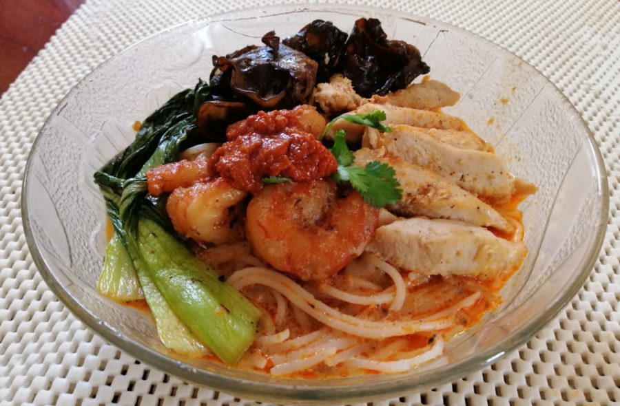 This is my version, maybe more garnished – with chicken, shrimp, bok choy, mushroom, but same Singaporean Maxwell taste