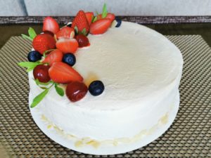 Composed of two layers of sponge cakes, soaked with strawberry syrup and filled with whipped cream and lots of berries. ..